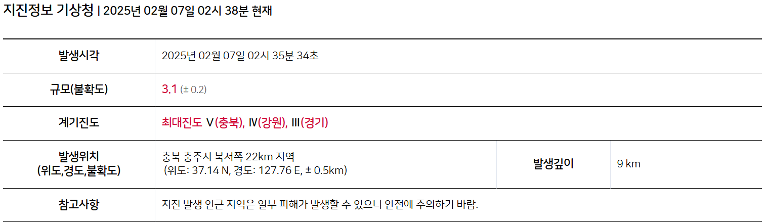 오늘(2025년 2월 7일) 새벽, 충청북도 충주에서 규모 3.1의 지진이 발생했습니다. 한반도는 상대적으로 지진이 적은 지역으로 여겨져 왔지만, 최근 들어 중규모 이상의 지진이 빈번히 발생하면서 더 이상 안전지대가 아니라는 인식이 강해지고 있습니다.